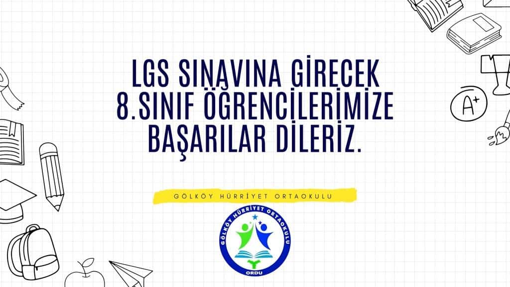 Gölköy Hürriyet Ortaokulu ailesi olarak, 15 Haziran Pazar günü LGS sınavına girecek tüm öğrencilerimize gönülden başarılar diliyoruz.