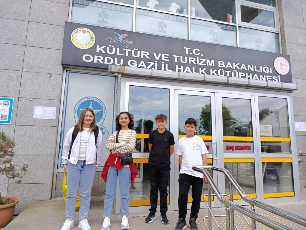 Ortaokul öğrencilerimizi hedef alan projenin yarışma süreci, Türkçe öğretmenlerimiz tarafından düzenlendi ve kitap sunumlarından, kitap raporlarından, sınavlardan teşekkül eden çeşitli yarışmalarla yürütüldü. Okuma yarışmaları neticesinde dereceye girerek sınıf birincisi olan öğrencilerimiz il merkezinde gerçekleşen gezi programıyla ödüllendirildi. Öğrencilerimiz Ordu Kültür ve Sanat Merkezi ile Orhan Gazi Halk Kütüphanesini, Rüsumat Gemisini, Fındık Müzesini ve Etnografya Müzesini ziyaret ettiler. Öğrencilerimizi ağırlayan Ordu Büyükşehir Belediyesine, gezinin kafile başkanı öğretmenimiz Tolga GÜNAL'a ve refakat eden diğer öğretmenlerimize teşekkür ederiz. Projenin yürütülmesinde işbirliği içerisinde hareket eden ve süreci düzenleyen Türkçe öğretmenlerimize özel olarak teşekkürlerimizi sunarız.